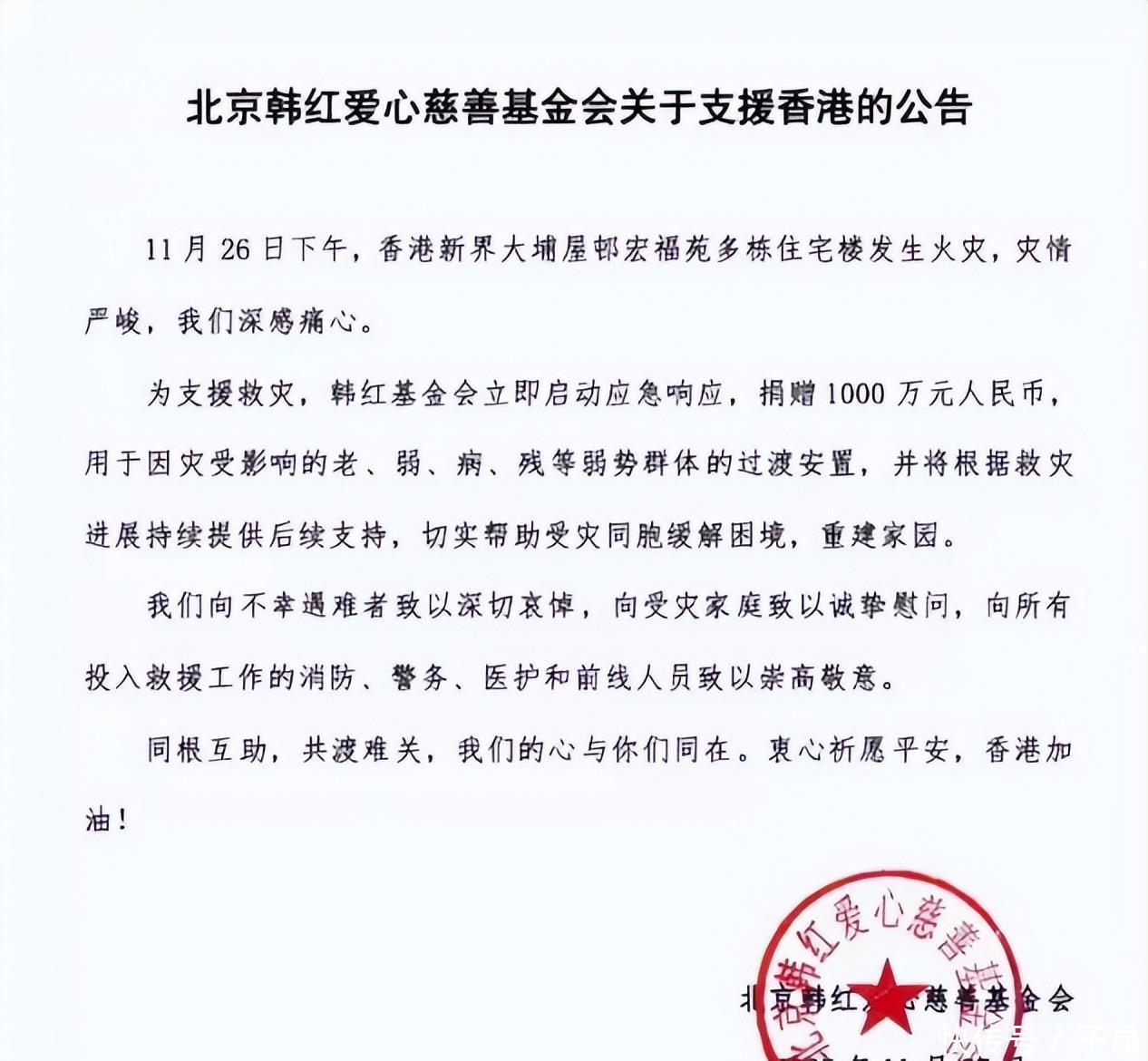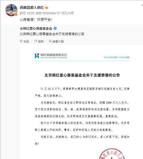 不过,韩红这个人强大就强大在这儿了,哪怕有人追着她挑刺,有人实名举报给她泼脏水,她也继续做该做的事儿。今年11月份,香港大府宏福苑发生火灾,社会各界都在积极救援。韩红知道了这件事儿之后,二话没说,第一时间从基金会掏出了1000万捐过去。