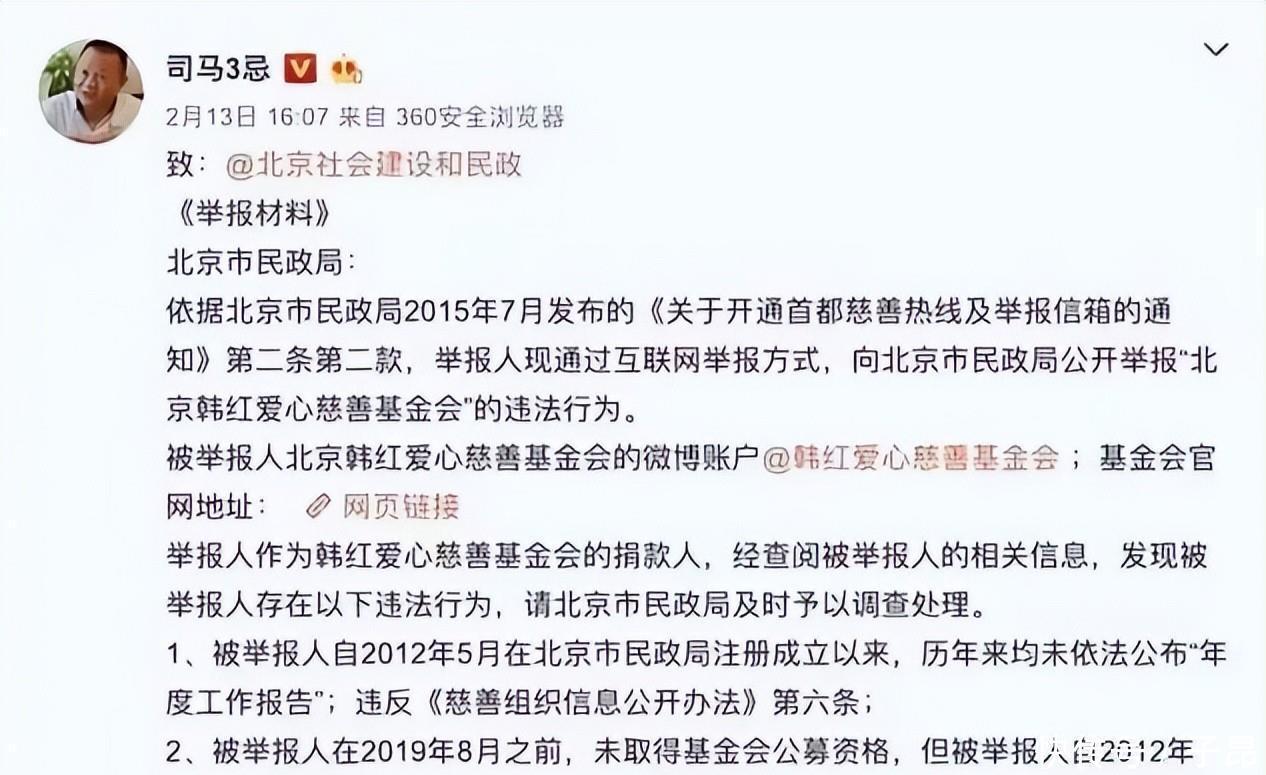 就这么到了2020年,正是疫情最严重的时候,韩红基金会二话不说的就站了出来,几乎全力的筹备抗疫物资。结果这时候网上跳出来一个叫做司马3忌的人,他把自己的个人信息全都公布出来了,弄了一出实名举报韩红基金会的事儿。